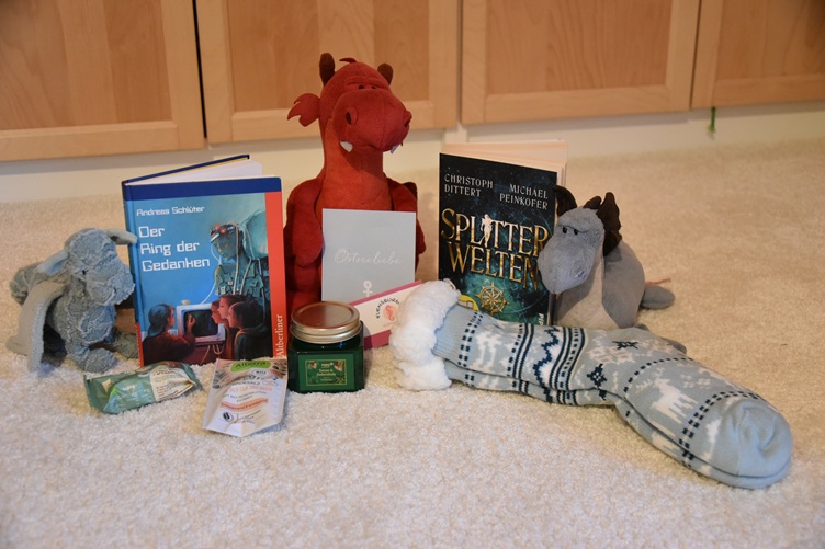 Dazu gab es noch ein rundum-Wohlfühlprogramm mit leckerer Schokolade, Badesalz, einer Kerze und superflauschigen Kuschelsocken. Perfekt für gemütliche Lesezeit auf der Couch 🐉🥰