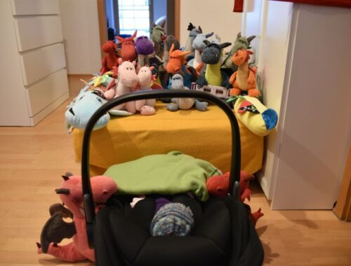 Wir geben uns hier in unserem Zuhause auch Mühe, alles erstmal wegzuflauschen, was nicht da sein sollte und zum Glück ist der A da auch sehr resistent. Die einzig wirklich komische Entwicklung ist das Yoga-Dino-Mädchen, aber hier wollen wir erstmal nichts unternehmen, solange sie sich nicht selber weh tut (bis auf eine geprellte Schwanzspitze und eine angestoßene Augenbraue ist da auch nichts passiert). Der Tapsor passt schon auf.